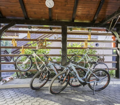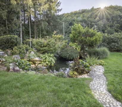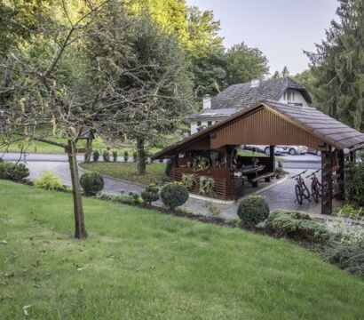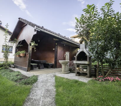 Poleg vhoda je tudi vrtna uta s kaminom, kjer se lahko spočijete in naužijete svežega zraka, si pripravite prijetno kosilo v vrtni uti, koristite lahko tudi zelenjavni vrt, ki vam je na voljo celo sezono.